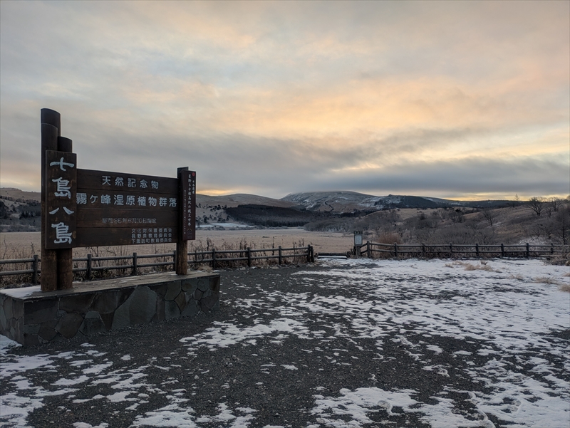 気温は―7度、八島湿原はカチコチに凍っていました。