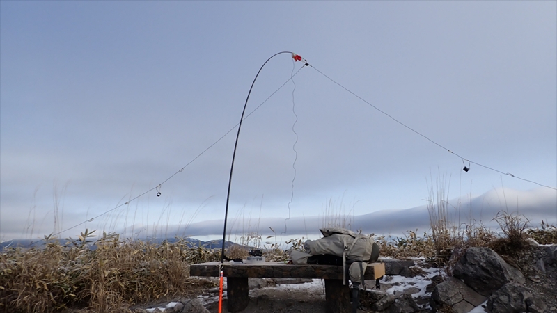 寒くて大変でしたが、アンテナを設営。 風で倒れそう。