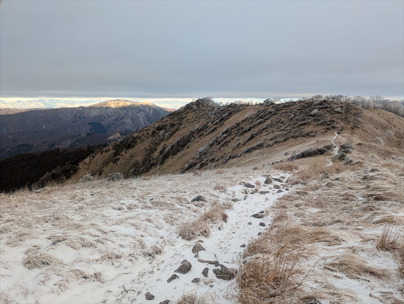 凍てついた道を登ります。
