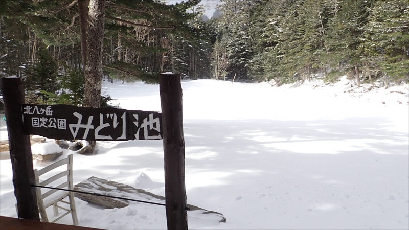 みどり池が真っ白です。