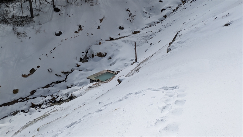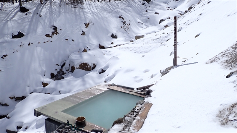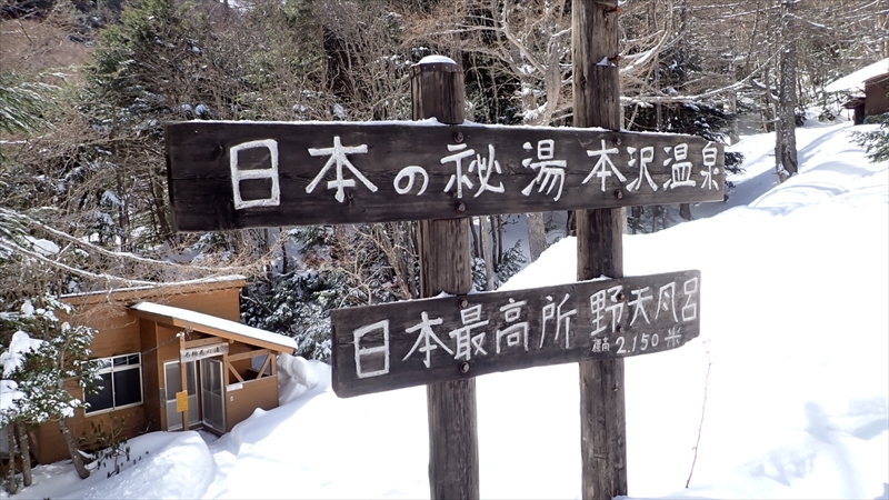 ようやく本沢温泉に到着。みどり池登山口から3時間15分。日本で最高標高地点、2150mにある野天風呂です。