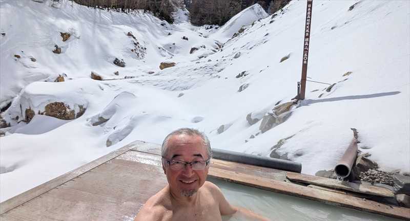 更衣室なんてありませんのでそのまま氷点下10度、時々ブリザードのような雪が舞う中で風呂に入るともう天国です。 温泉のお湯が眼鏡につくとそのまま凍る寒さです。