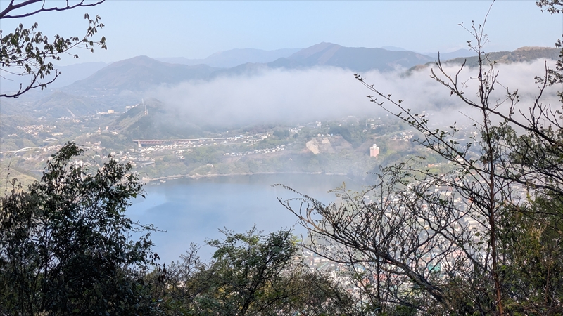 陣馬山のふもとにはまだ霧が出ています。